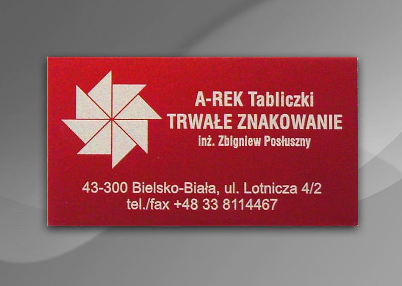 Tabliczka z aluminium anodowanego na kolor czerwony (możliwy: czarny, niebieski, zielony) - grawerowana laserem.