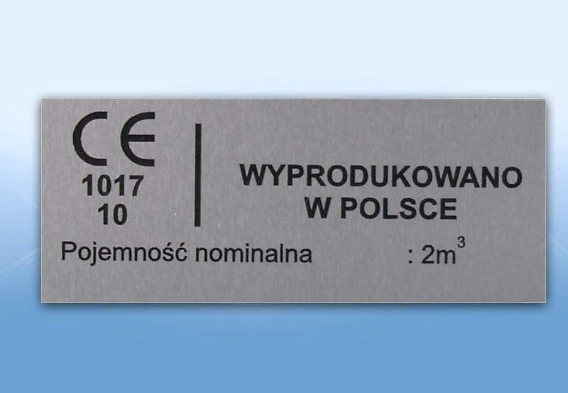Tabliczka z aluminium anodowanego w kolorze naturalnym i pokrytego poliestrem - grawerowania laserem i zaczerniona elektrochemicznie.