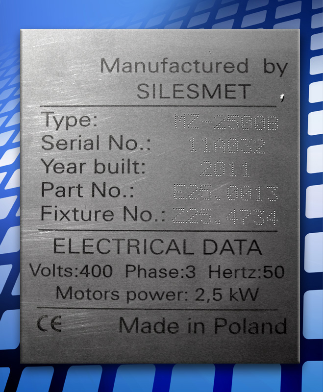 Tabliczka ze stali kwasoodpornej 304 - grawerowana laserem YAG i znakowana mikroudarowo (mikropunktowo).